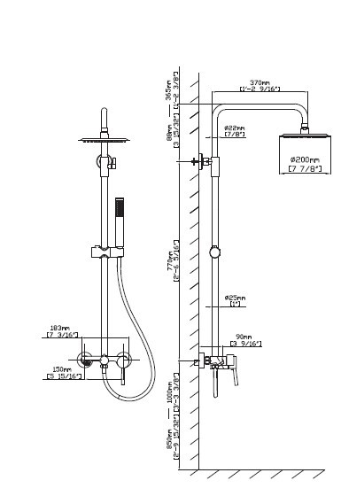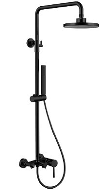 Душ колона Artemis Nero - стенен смесител за вана/душ едноръкохватков с превключвател и аксесоари: душ глава ф20см. кръг ABS рамо за душ глава 34.8см. стационарно душ слушалка ф10см. кръг ABS окачалка шлаух 150см. и телескопично тръбно окачване 106.5 – 136.5см. неръждаема стомана черен мат SO551B-Nero/5206836616841