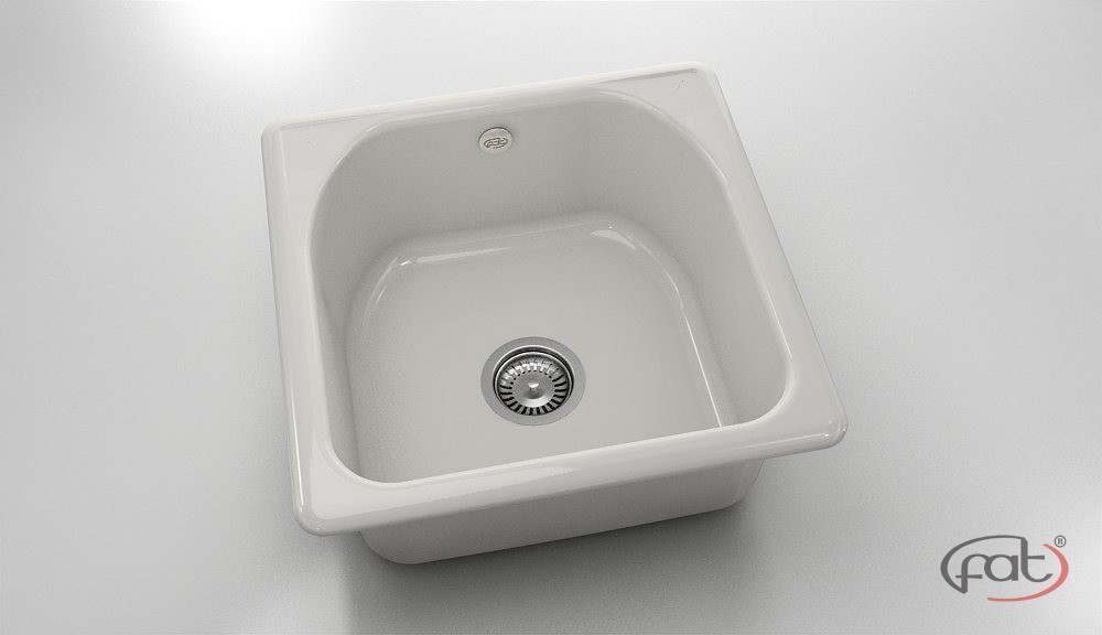 Кухненска мивка Класик 51/51/21см. единична цвят 02 Полярен гранит/Бял полимермрамор с включен сифон ф90мм. с преливник 20802