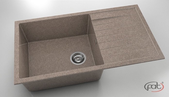 Кухненска мивка за вграждане Авангард с ляв/десен плот 90/49/h21см. единична цвят 130 Calahari/Бежов граниксит с включен сифон ф90мм. с преливник 229130
