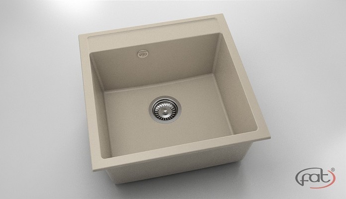 Кухненска мивка за вграждане Авангард 51/51/h21см. единична цвят 1003 Бежов фатгранит с включен сифон ф90мм. с преливник 2251003