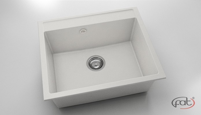 Кухненска мивка за вграждане Авангард с размери 60/51/h21см. единична цвят 1000 Чисто Бял фатгранит с включен сифон ф90мм. с преливник 2271000