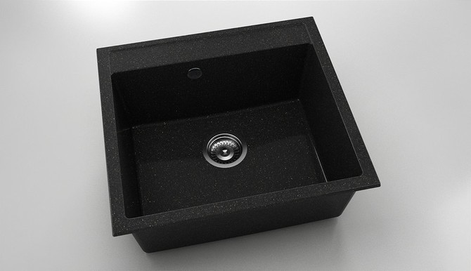 Кухненска мивка Авангард за вграждане с размери 56/51/h21см. единична цвят 422 Galaxy Black/Черен граниксит с преливник и сифон 226422