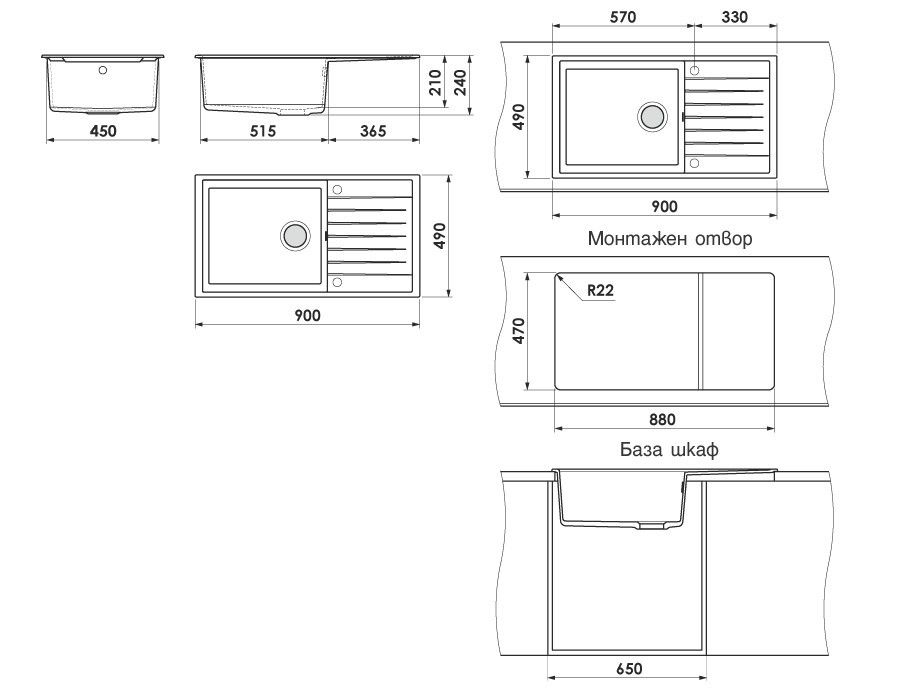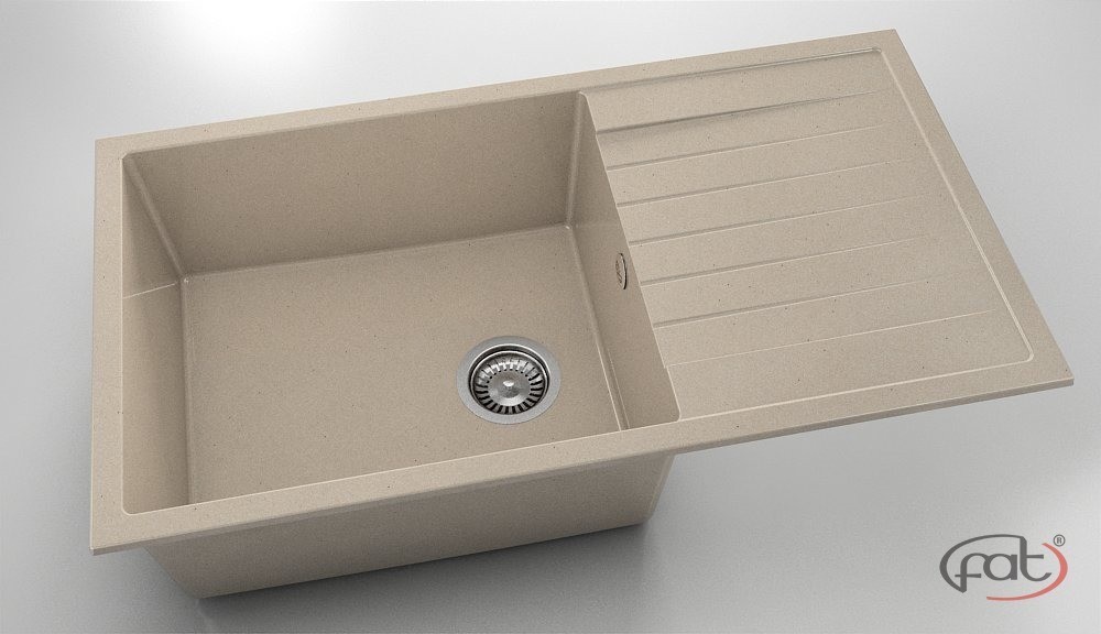 Кухненска мивка за вграждане Авангард с ляв/десен плот 90/49/h21см. единична цвят 232 Sunny Bay/Бежов граниксит с включен сифон ф90мм. с преливник 229232.