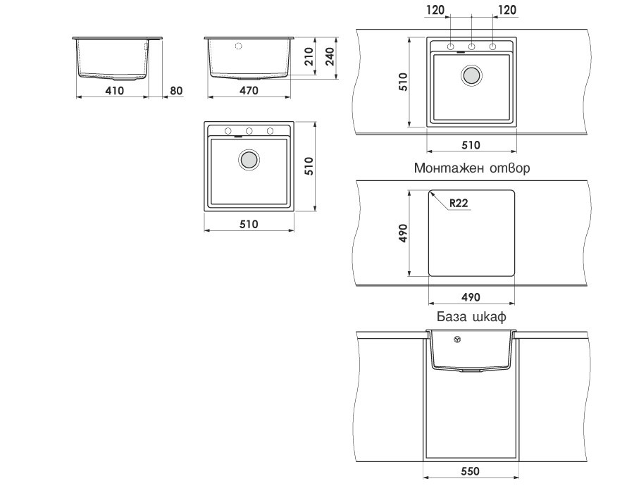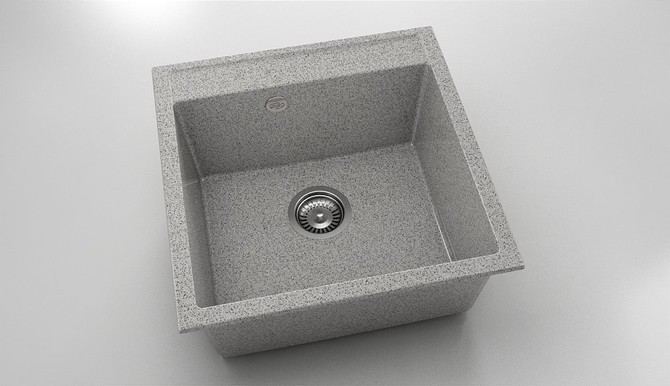 Кухненска единична мивка за вграждане Авангард с размери 51/51/h21см. В цвят 170 Milki Way/Сив от граниксит с включен сифон ф90мм. и преливник 225170.