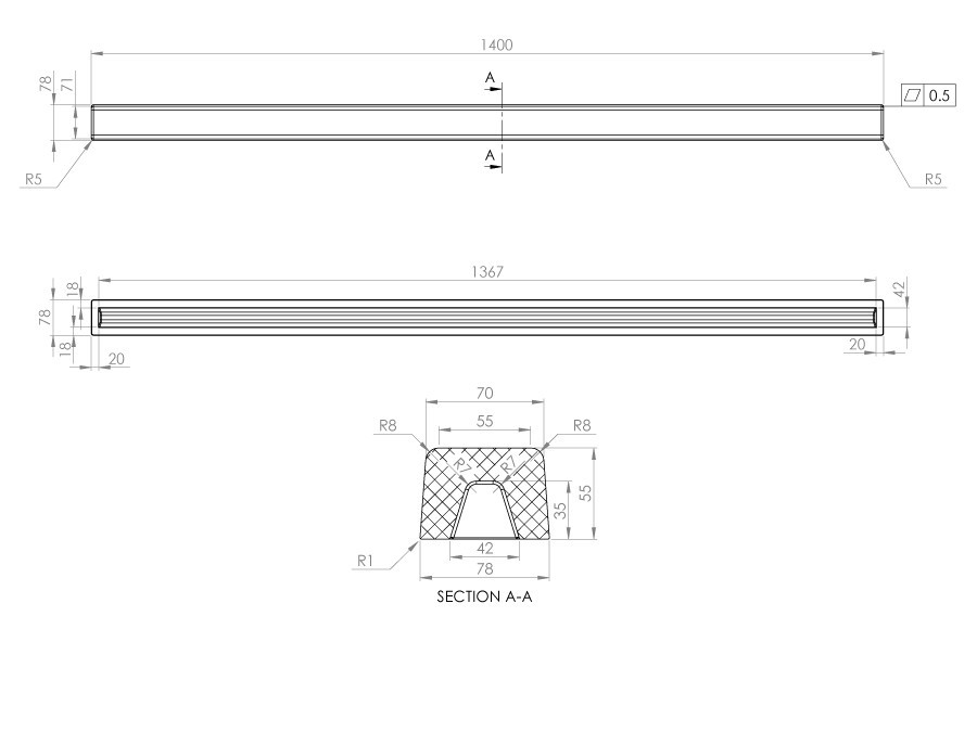 Праг за душ кабина с размер 100см. до 140см. прав заоблен край цвят 170 Milki Way/Сив граниксит 5601140170.