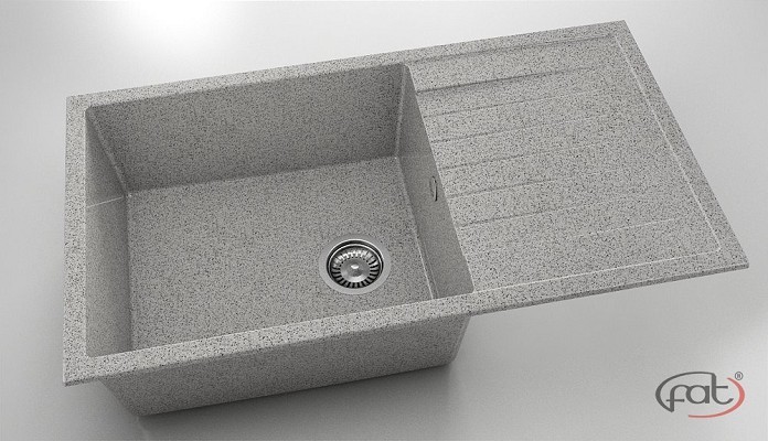 Кухненска единична мивка за вграждане модел Авангард с ляв/десен плот и размери 90/49/h21см. Цвят 170 Milki Way/Сив граниксит с включен сифон ф90мм. с преливник 229170