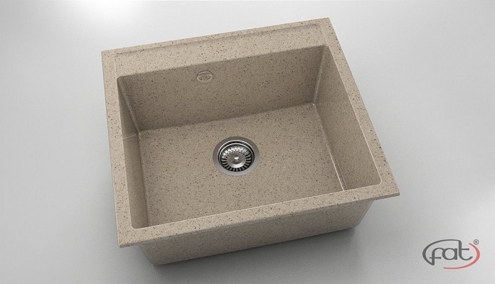 Кухненска мивка за вграждане Авангард с размер 56/51/h21см. единична в цвят 229 Sandcastle/Бежов от граниксит с включен сифон ф90мм. с преливник 226229