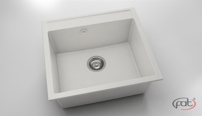 Кухненска мивка за вграждане Авангард с размер 56/51/h21см. единична в цвят 1000 в чисто бял фатгранит с включен сифон ф90мм. с преливник 2261000.