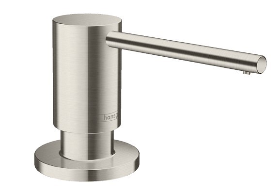 Дозатор за течен сапун A41. Модела е за вграждане за кухненска мивка, проекция на чучура 9.1см. вместимост 500мл. еднократна доза 2 ml. цвят неръждаема стомана 40438800/Stainless Steel.