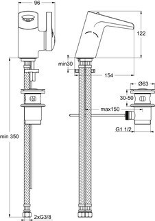 Смесител за мивка Melange с размер 9.6/15.4/h12.2см. стоящ , едноръкохватков с изпразнител с керамичен затварящ механизъм хром B8630AA/Chrome