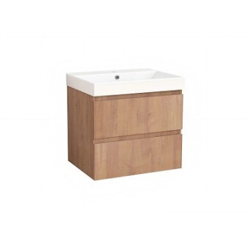 Шкаф за баня Bellini 6039-50 49/45/h50см. Окачен PVC дървесен цвят PS001 с меламиново покритие боядисано (панели 15мм., гръб 5мм.) две чекмеджета с водачи DTC с механизъм soft close PVC U-канал и мивка 5953W-51 порцеланова бяла с отвор за смесител и преливник 6039-50+5953W-51/6988354275227