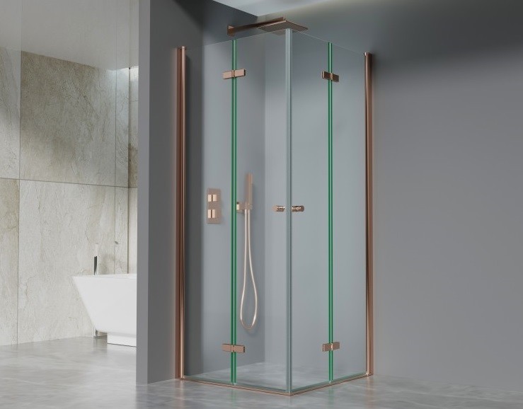 Душ кабина Интер 90/100/h200см. стъкло 6мм. мат две отваряеми врати и две стационарни стъкла алуминиев профил цвят розово злато Реверсивна без душ корито Combination 114+114 RG