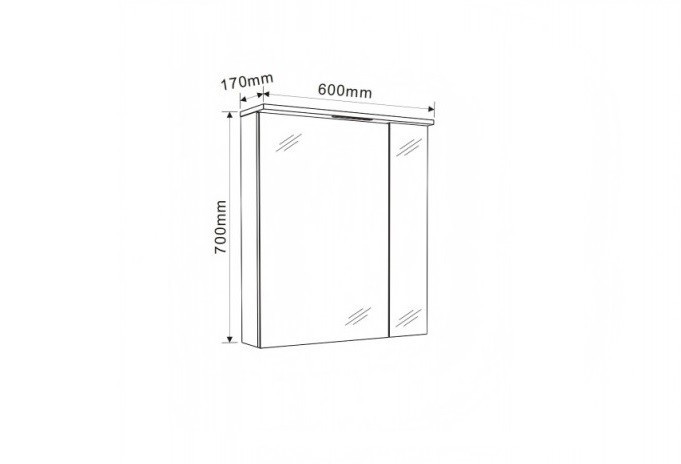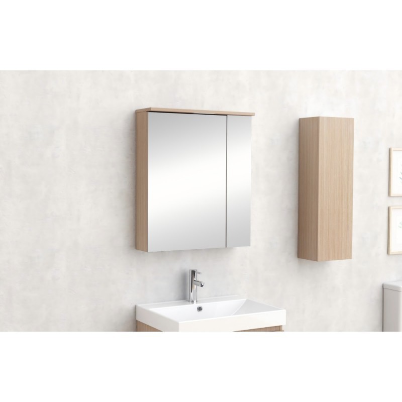 Шкаф горна част Amo-60см. 6018-60 с размер 60/17/h70см. PVC Огледален шкаф в дървесен цвят PS186 меламиново покритие с една врата от PVC- 5мм за задната част и 15мм за корпуса. Вграденото огледало е с дебелина 3 мм. с DTC панти с плавно затваряне и LED осветление с IP44 защита. Предлага се в напълно сглобен вид за лесен монтаж.