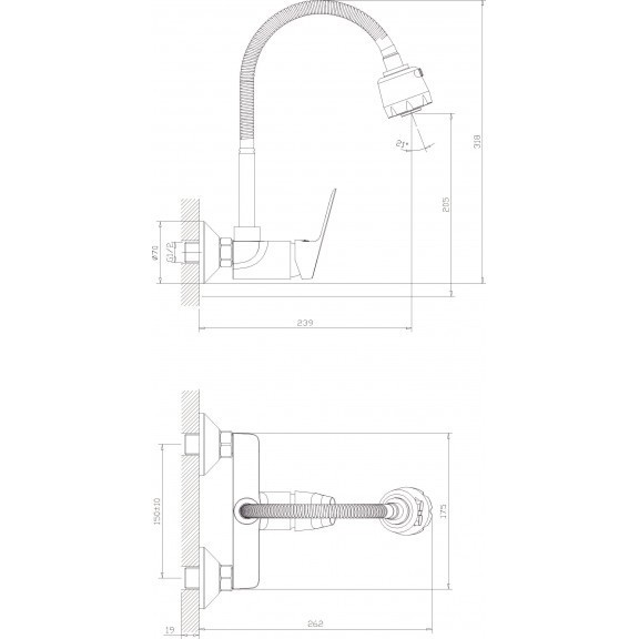 Смесител за мивка Linni ICF5452152/М7313 15/26.2/h31.8см. стенен двудупков едноръкохватков висок чучур h=20.5см. без изпразнител хром ICF5452152/М7313/6988354250811/Chrome