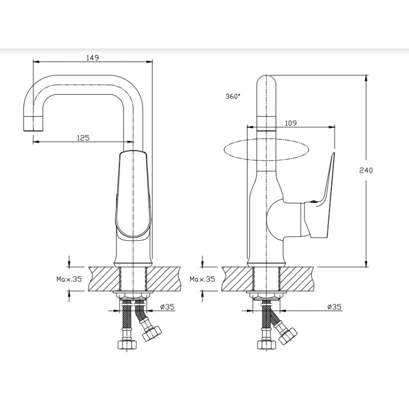 Смесител за мивка Емма ICF1005007/7113 10.9/14.9/h24см. стоящ висок чучур едноръкохватков без изпразнител хром ICF1005007/7113/6988354233722/Chrome