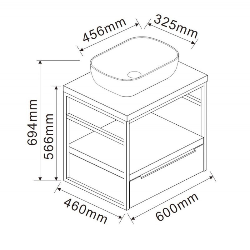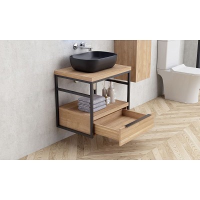 Шкаф долна част Комо ICP6056-039 60/46/h56.6см. Окачен PVC с меламиново покритие дървесен цвят PS039 едно чекмедже с дръжка алуминиева 40см. черен мат DTC релси с механизъм soft close един отворен рафт/ниша метална конструкция черен мат Без мивка ICP6056-039/6988354273001/Без мивка