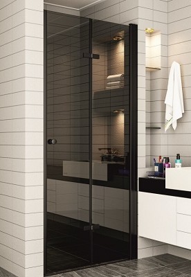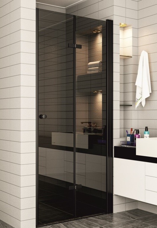 Параван WalkIn ICS114G/100Nano с размери 97-98/h200см. стъкло сиво Grey 6мм. Nano закалено една врата с дръжка тип топче цинк и панти цинк и едно стационарно стъкло магнитно уплътнение алуминиев профил черен мат Реверсивен ICS114G/100Nano/6988354268892. Забележка: за монтаж на паравана между две стени е необходимо да се поръча допълнителен профил 4-114