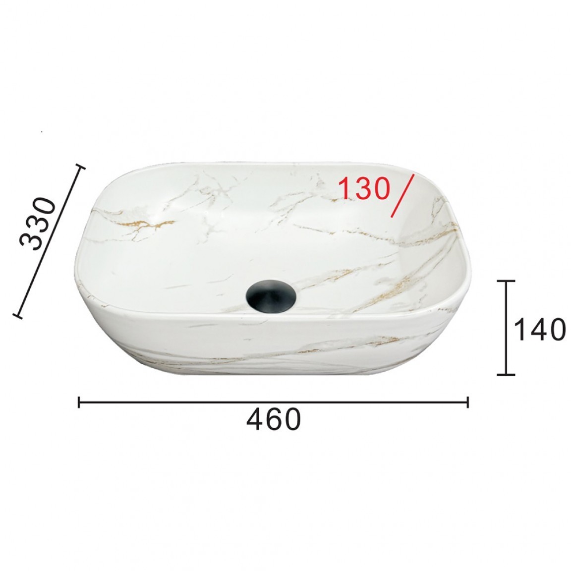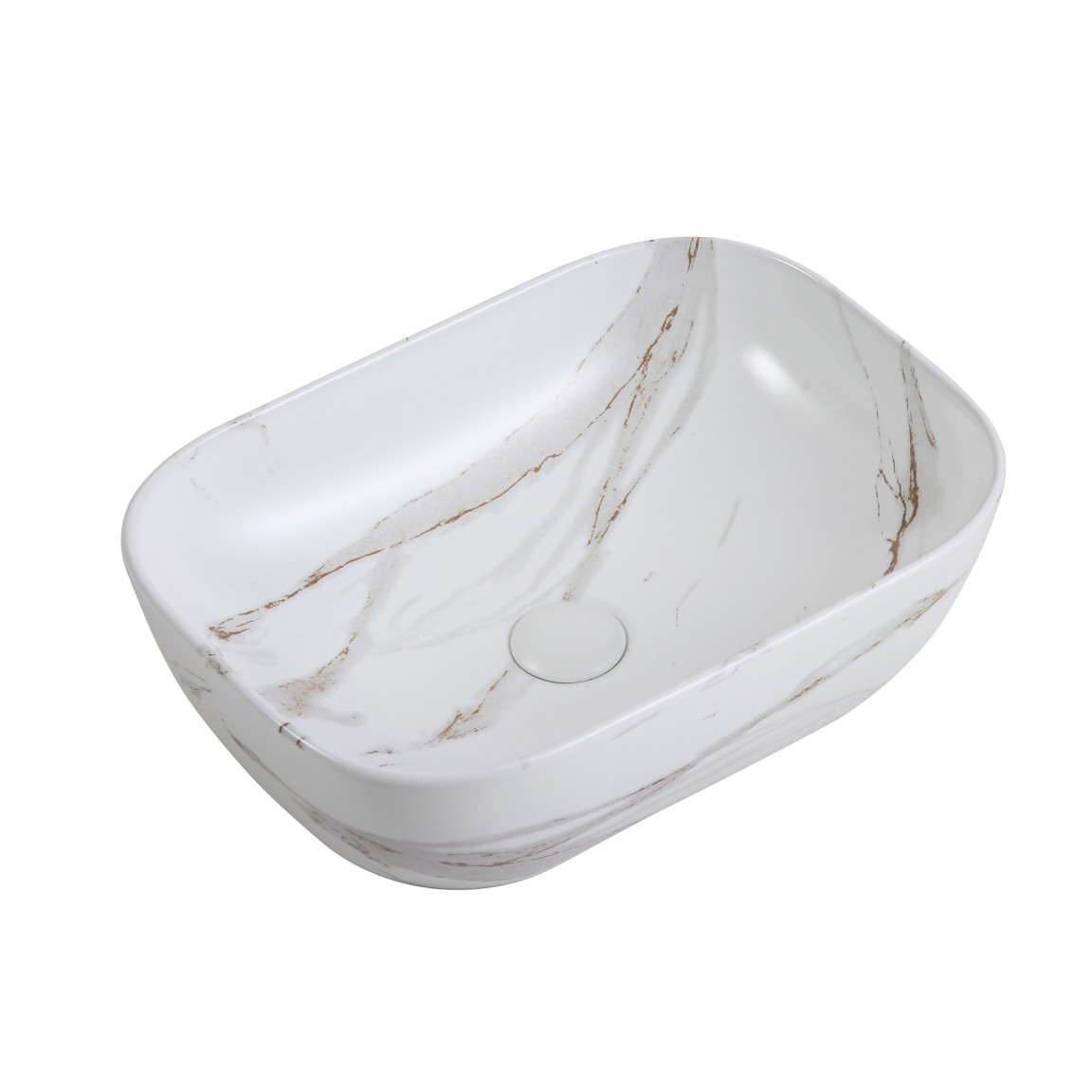 Мивка върху плот Интер 887Marble с размери 46/33/h14см. порцеланова бял мат/мраморен ефект , без отвор за смесител и без преливник 887Marble/White Matt.