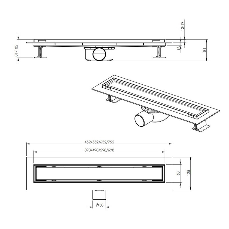 Сифон подов линеен Интер 50048-80 New Generation с размери 80/12.5см. ABS сив гланц решетка неръждаема стомана воден и сух затвор дебит 52л./мин. 50048-80NewGeneration/6988354274527