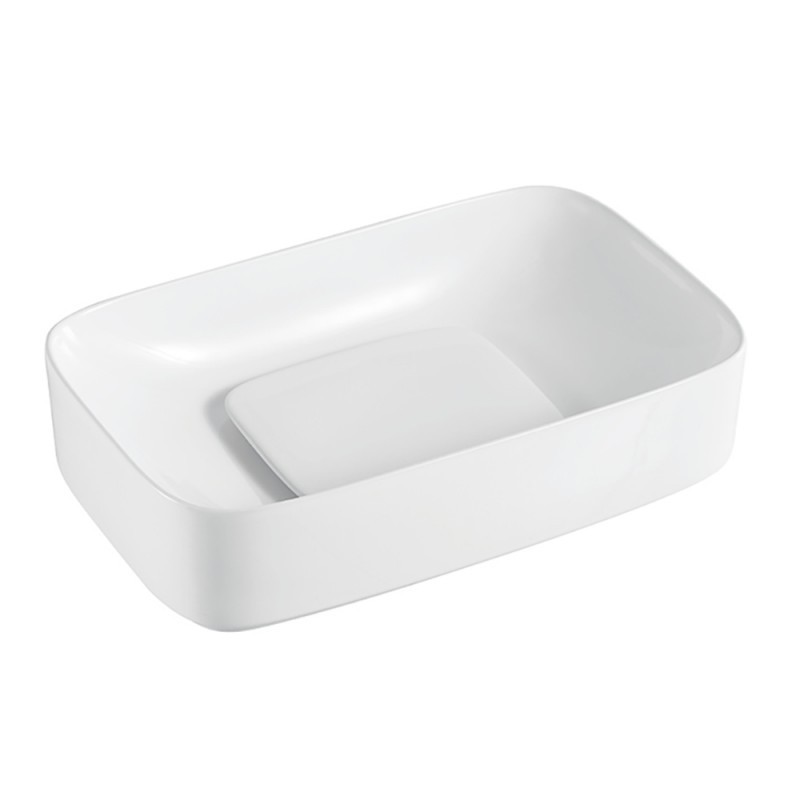 Мивка върху плот Donni 901W с размер 60/37.5/h14.5см. Модела е порцеланов в бял цвят без отвор за смесител и без преливник с включена декоративна капачка бяла 901W/6988354276637/White.