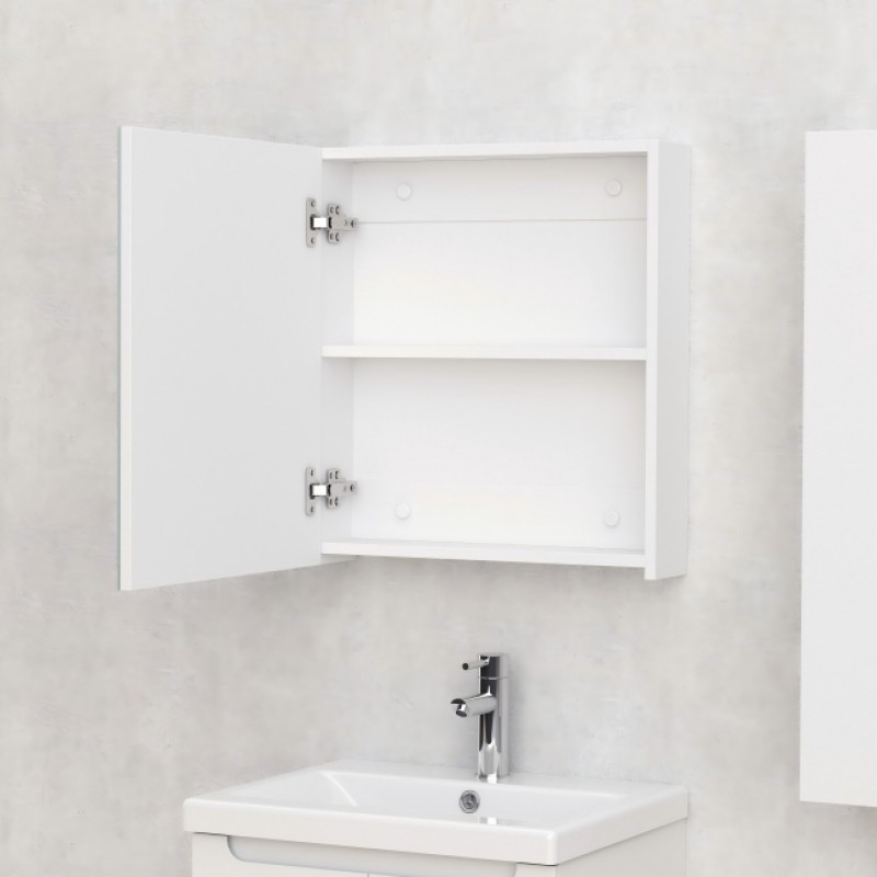 Огледален шкаф за баня, изработен от PVC с бяло гланцово покритие.