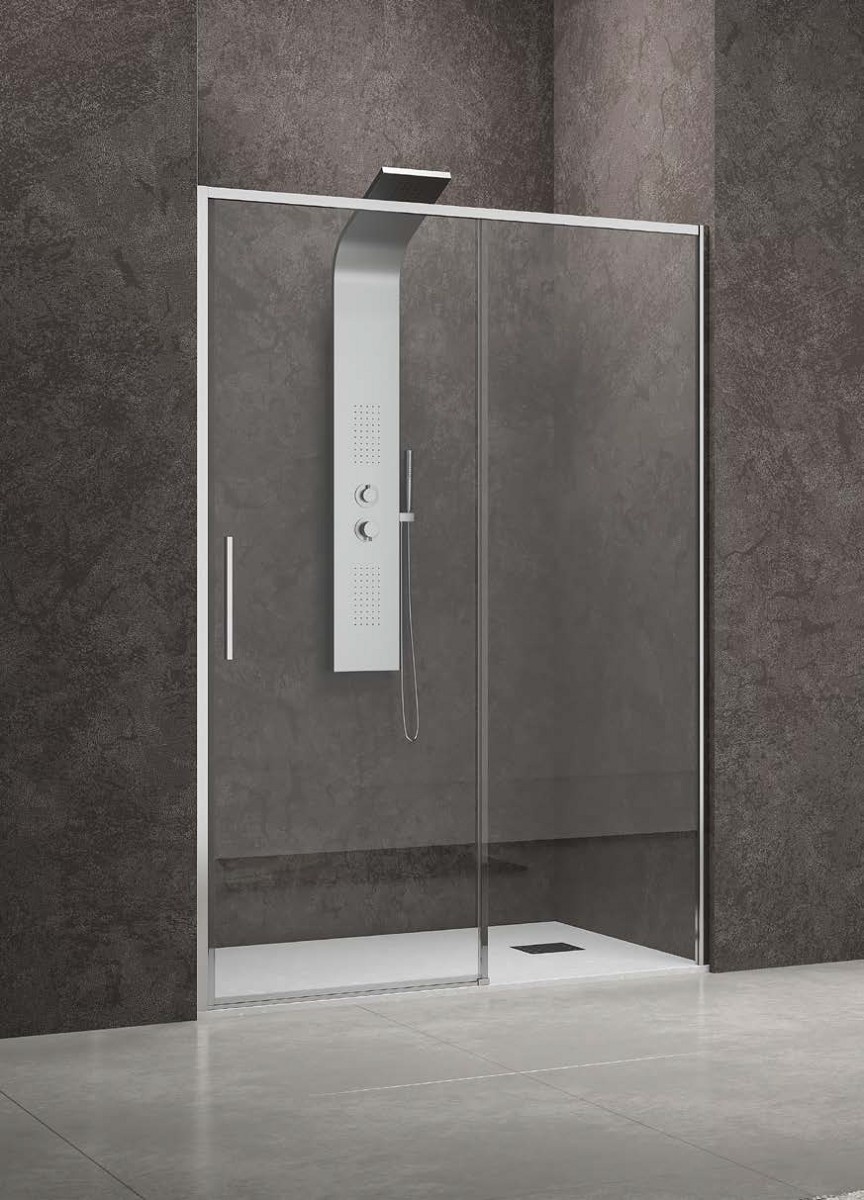 Параван Lea 400 Cromo 140/h200см. кр. стъкло 6мм. Nano една плъзгаща се врата и едно стационарно стъкло алуминиев хром профил 5206836651316/Lea 400 140/h200см. Nano