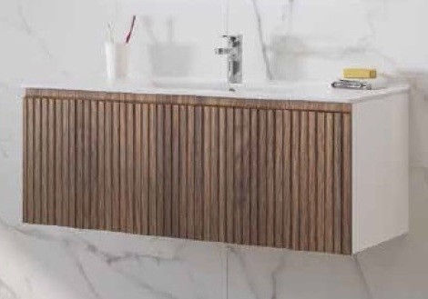 Промционален комплект шкаф долна част Kion KI100L 99/45.5/h45см. Окачен MDF водоустойчив едно чекмедже с механизъм Soft close цвят Charleston Oak W16 KI100L/5206836629469/Charleston Oak W16 и мивка Karag за вграждане/мебел LT7506-100 101/47/h18см. порцеланова бяла с отвор за смесител и преливник LT7506-100/5206836102665/Bianco.