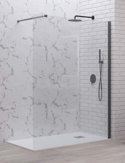 Параван Walk In 1 Nero с размери 110/h200см. Модела е изработен от кристално стъкло 8мм. закалено Nano-skin покритие. Държач прав 120см. алуминиев профил в цвят черен мат 5206836056647/Nero/Nano.