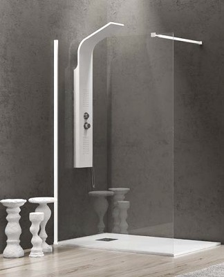 Параван Walk In 1 White/Bianco 90/h200см. кр. стъкло 8мм. закалено Nano-skin покритие държач прав 120см. алуминиев профил цвят бял 5206836056906/Walk In 1 White 90/h200см. Nano 5206836657370 - код стъкло 90/200 5206836656212 - код алуминиев профил цвят бял