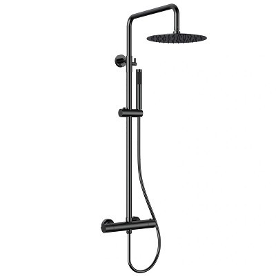 Душ колона Artemis Nero SC418M/1241. Модела има смесител за душ и вана, термостатичен с аксесоари. Душ глава ф30см. кръгла, еднофункционална с рамо 37.5см. Стационарна душ слушалка стик еднофункционална. Окачалка шлаух PVC 150см. и телескопично тръбно окачване с регулируема височина 85-124.5см. от неръждаема стомана INOX S/S 304 цвят черен.