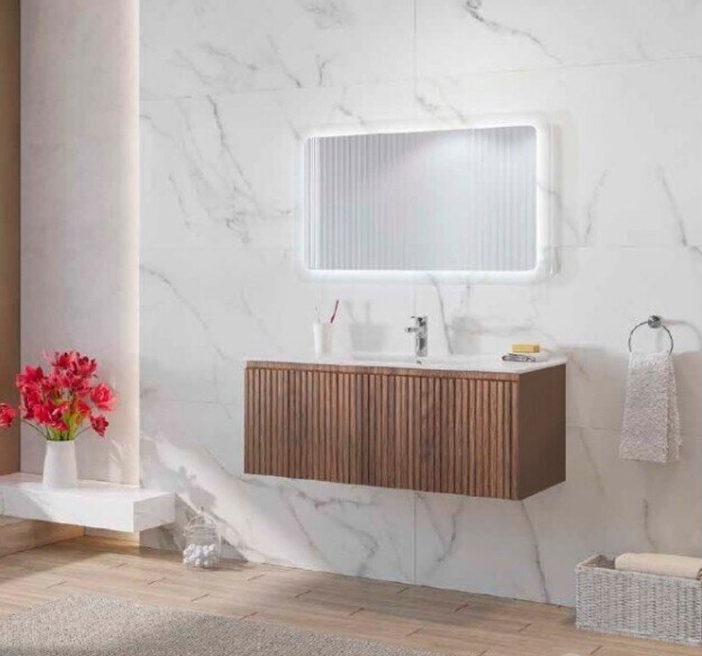 Шкаф за баня Kion KI100L 99/45.5/h45см. Окачен MDF водоустойчив, едно чекмедже с механизъм Soft close . Цвят : Charleston Oak W16 . Без мивка ! KI100L/5206836629469/Charleston Oak W16 . Цвят : БЯЛ/КАФЯВ ВАЖНО! ПРОМОЦИОНАЛНАТА ЦЕНА НА ШКАФА ВАЖИ САМО, АКО СЕ КОМБИНИРА С МИВКА ОТ ТАЗИ СЕРИЯ !