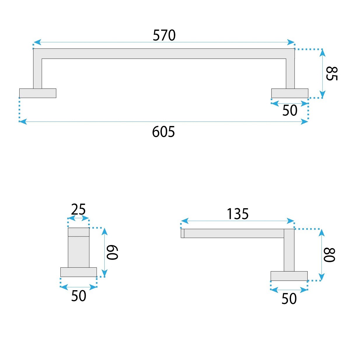 Пръчка за хавлия с размер 60.5см. държач квадрат четкан мед Brush Copper