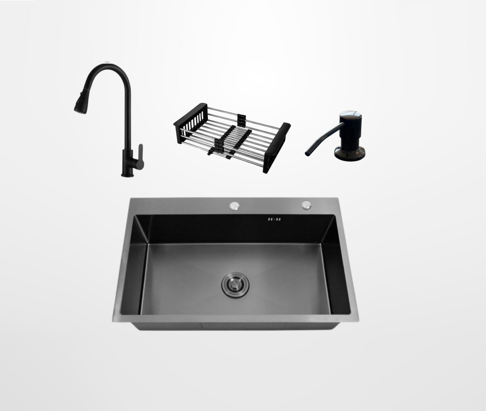 Комплект кухненска мивка 00400 черенa – със смесител, дозатор и отцедник.