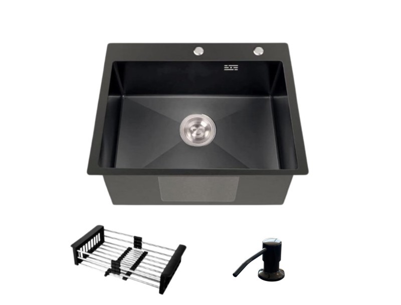Комплект кухненска мивка 5136 черни - с дозатор и отцедник.