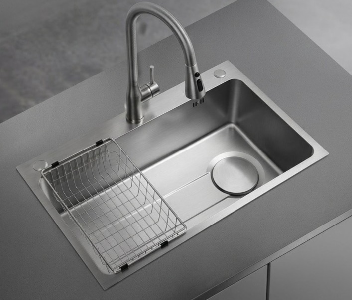 Кухненска мивка с размер 75/46/22см. единична изработена от неръждаема стомана SUS304 с ленена текстура.