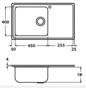 Кухненска мивка с ляв/десен плот 0993 Len с размер 78/50см.