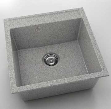 Кухненска мивка 51/51см.,единична, полимермрамор. цвят 11 Сив гранит ,сифон ф90 с преливник 22511