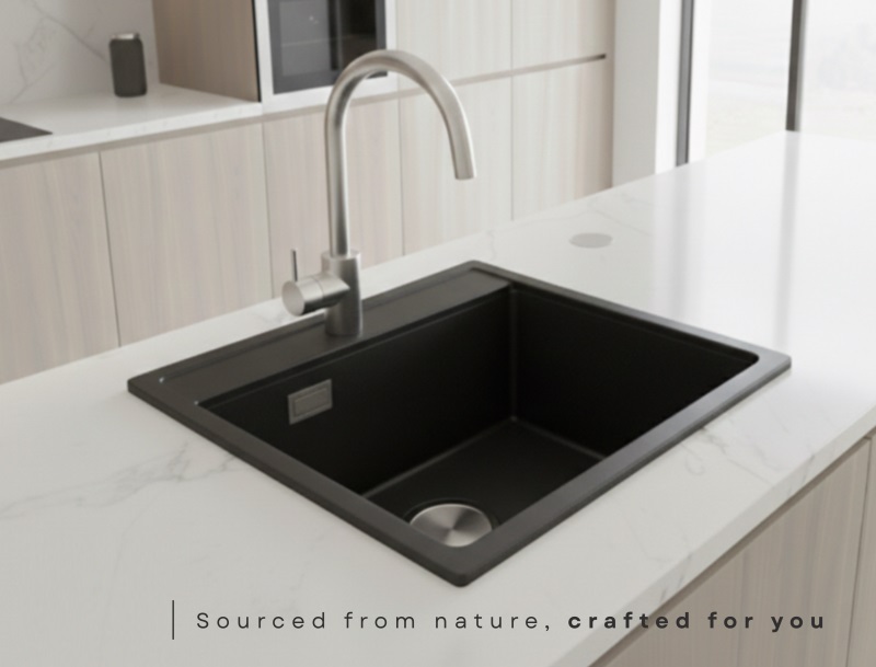 Моделът е изработен от гранитна сплав Titanquartz: 80% кварцов пясък и 20% високоефективна смола и други компоненти,