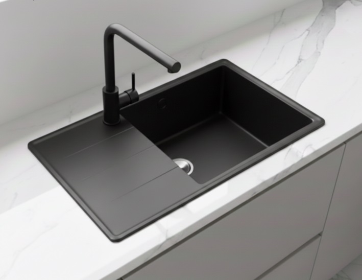 Кухненска мивка с ляв/десен плот с размери 78/50см. в цвят черен (Black Pearl) – 1768.