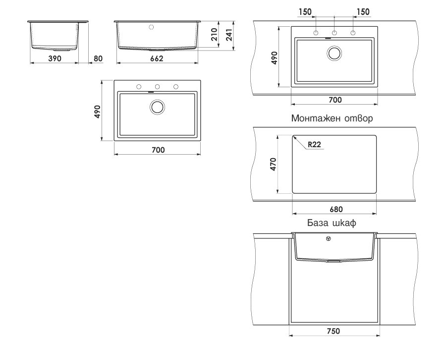 Кухненска мивка за вграждане Авангард с размери 70/49/h21см. Модела е единичен в цвят 1008 черен металик. Материала от който е изработена е фатгранит. Има включен сифон ф90мм. с преливник 2311008.