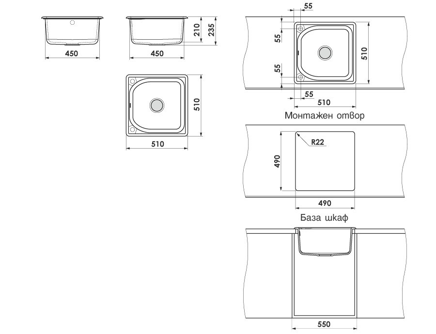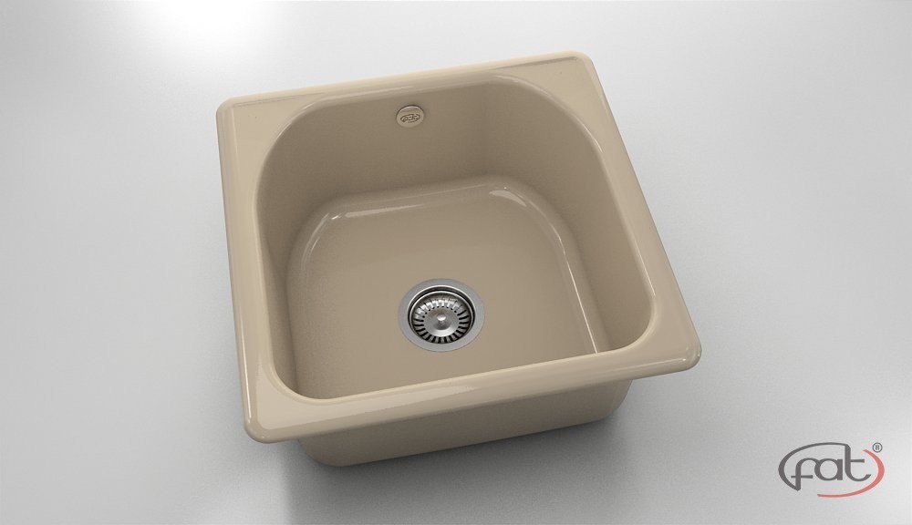 Кухненска мивка за вграждане Класик 51/51/h21см. единична цвят 05 Капучино гранит/Бежов полимермрамор с включен сифон ф90мм. с преливник 20805