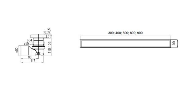 Линеен сифон MAGdrain Duo Inox с размер 30/5.5см.