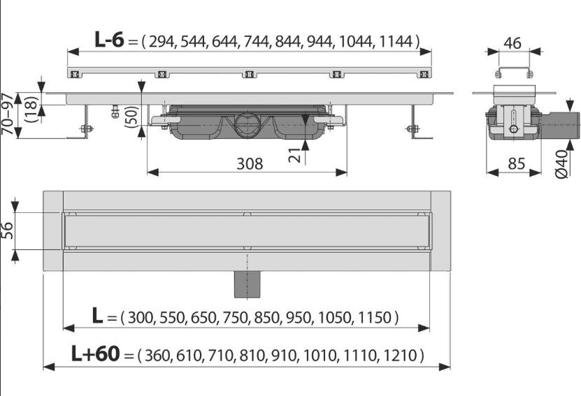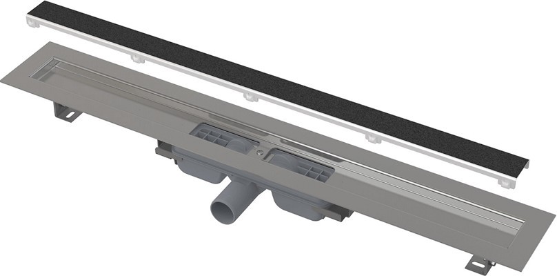 Линеен подов сифон APZ115 Marble Low с размер 950мм. Полипропилен с решетка от неръждаема стомана за вграждане на плочка без видим ръб. Модела разполага с Клапа Воден затвор, хидроизолационна лента, регулируема височина APZ115Marble Low/950мм./8595580565497 Забележка: за дебели подови покрития /камък, мрамор и др./