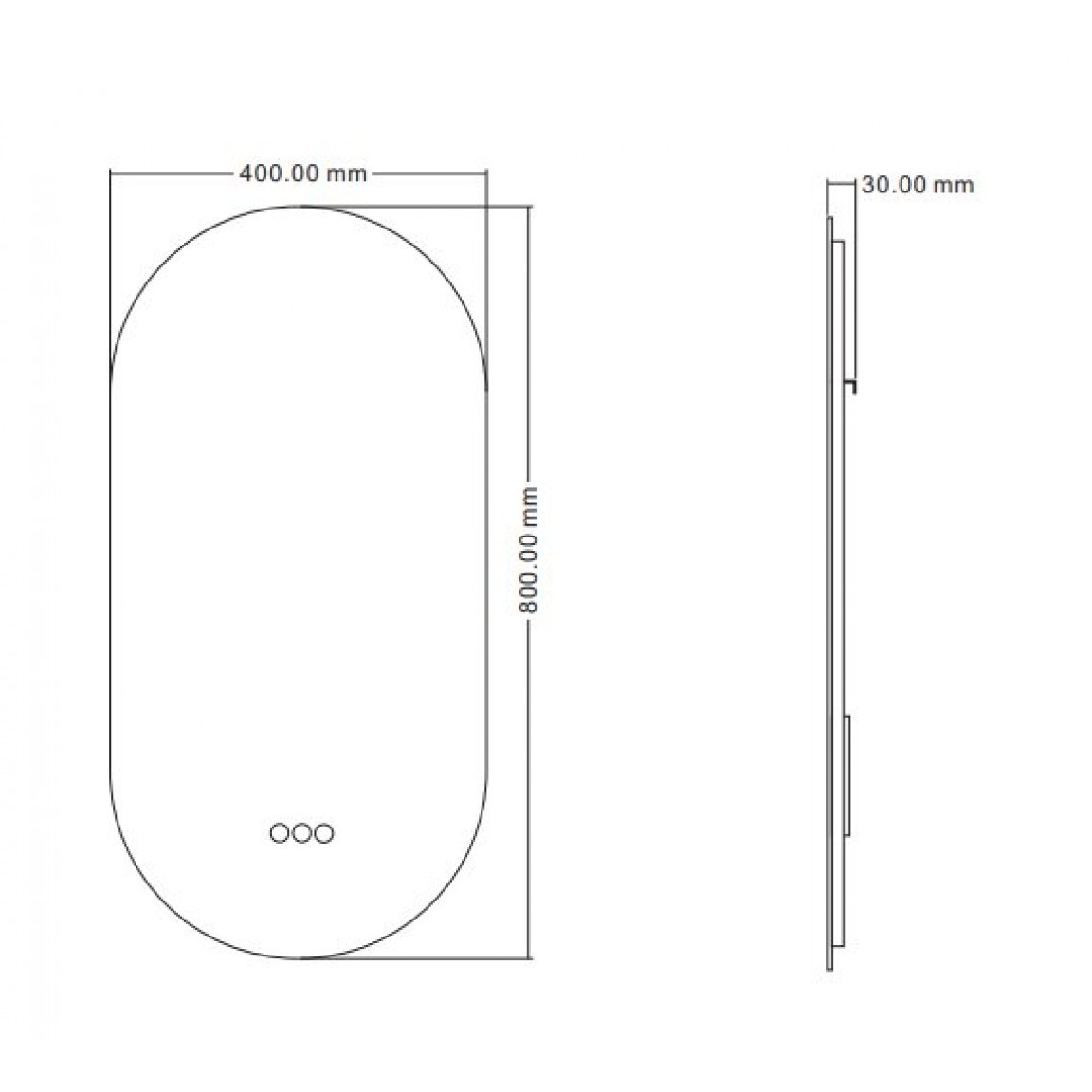 Огледало Bruno 1955-40 40/h80см. Овал с вградено LED осветление Touch бутон 6500K 2574LM Нагревател Антифог функция вертикален монтаж с включени крепежни елементи 1955-40/6988354275685