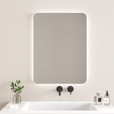 Огледало Fico 1945-60 60/h80см. правоъгълно със заоблени ръбове с вградено LED осветление IP44 1404LM 6500K студено бяла светлина дължина на LED лента 260см. Touch screen бутон двоен кръгъл Нагревател Функция против замъгляване Вертикален/Хоризонтален монтаж 1945-60/6988354275531