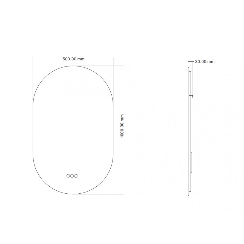 Огледало Интер 1955-50 50/h100см. Овал вертикален монтаж с вградено LED осветление 3234LM/6500K Touch screen/бутон с издърпване и нагревател 1955-50/6988354275692