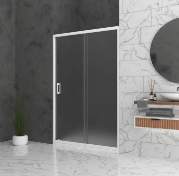 "Параван Бела W1 120/h195см. прозрачно стъкло 6мм. закалено алуминиев профил гланц 2-части стационарна и отваряема магнитна лента бяла дръжка двойна хром d=160мм. Soft-stop стопери