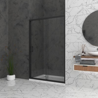 Параван Бела W1 145/h195см. със 6мм. закалено кристално стъкло, алуминиев профил черен мат 2-части стационарна и отваряема част, магнитна лента, двойна дръжка черна d=160мм. Soft-stop стопери