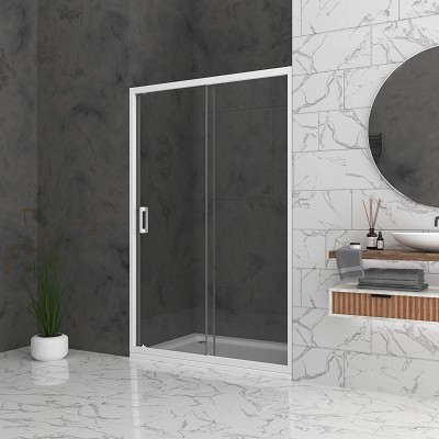 Параван Bella W1 с размери 115/h195см. Модела е изработен от кристално стъкло 6мм. закалено, алуминиев профил бял мат от 2-части стационарна и отваряема с магнитна лента. Дръжка двойна хром d=160мм. Soft-stop стопери.