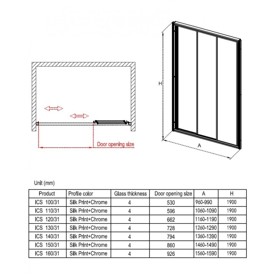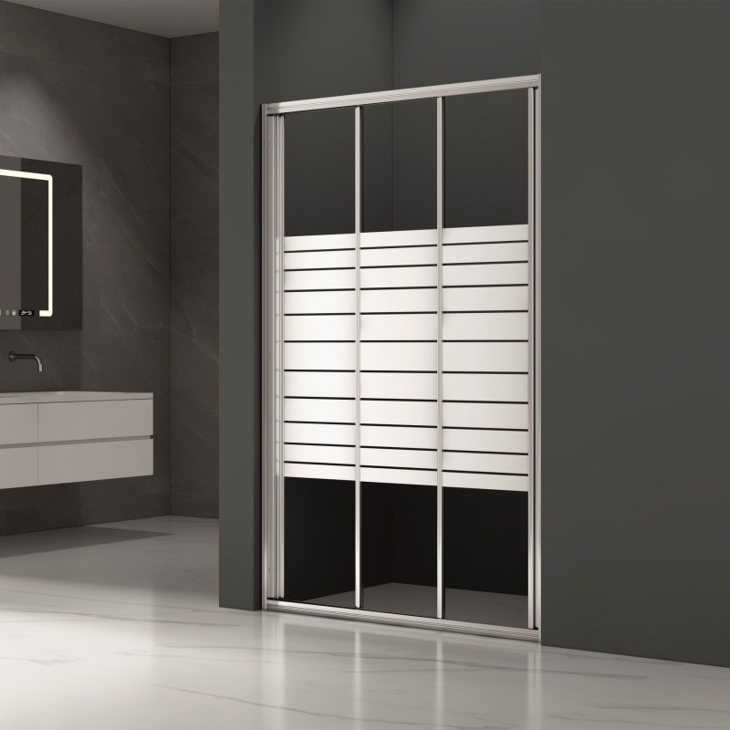 Параван ICS120/31 120/h190см. стъкло рисувано 4мм. едно стационарно стъкло и едно плъзгащо се стъкло хром профил и пръчка за хавлия
